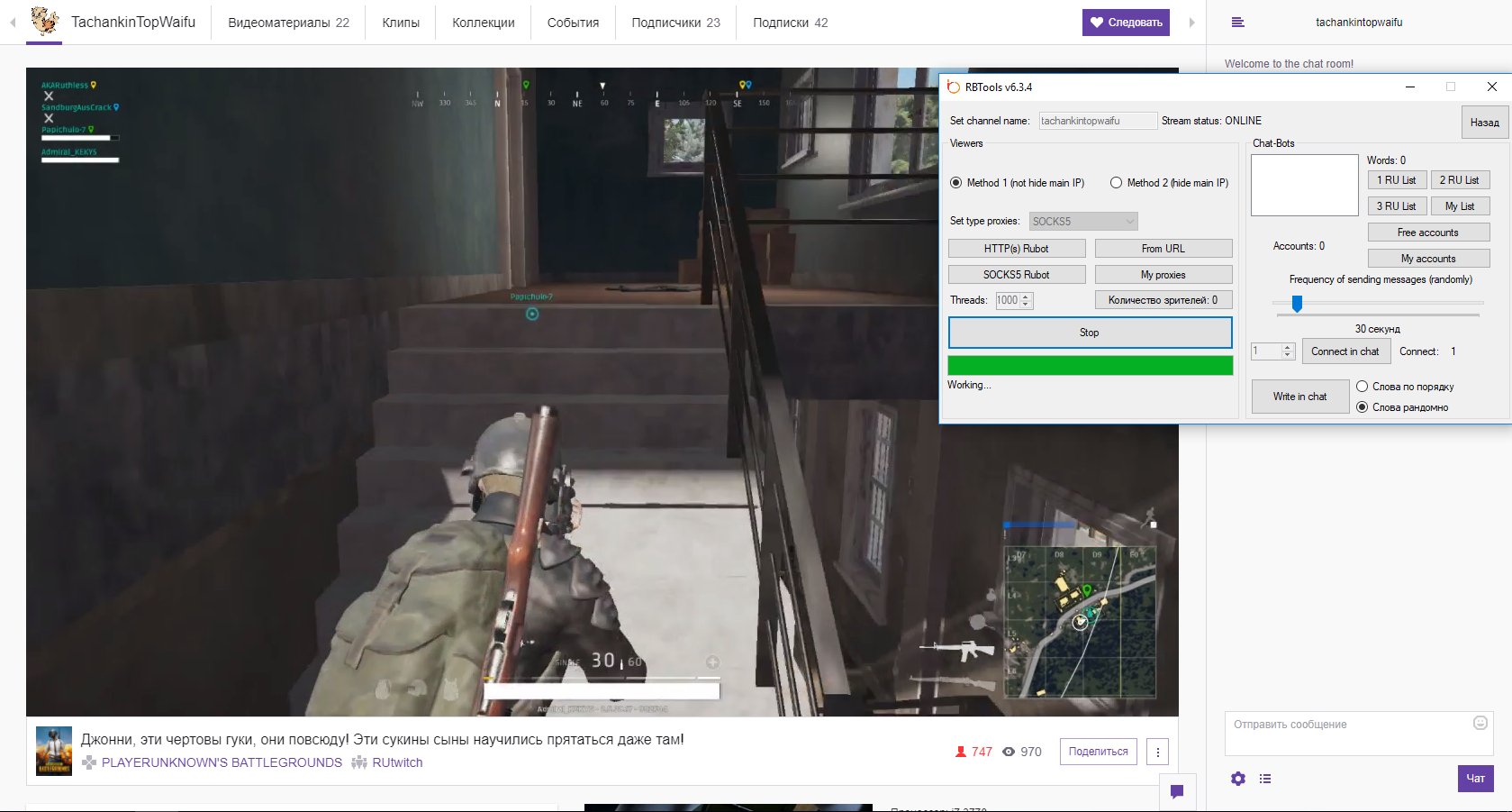 Гость qvixed Опубликовано 17 мая, 2017 Опубликовано 17 мая, 2017 2 часа назад, xayzenberg2 сказал: а что за прокси? за 120 долл скок крутят днем и вечером? рекомендую world mix, крутят хорошо скрин выше есть, ну если судить по старому софту где были потоки в 2 окна по 300 потоков крутили 1к+ без разницы день или вечер максимум ,что я выжимал это 3700 зрителей