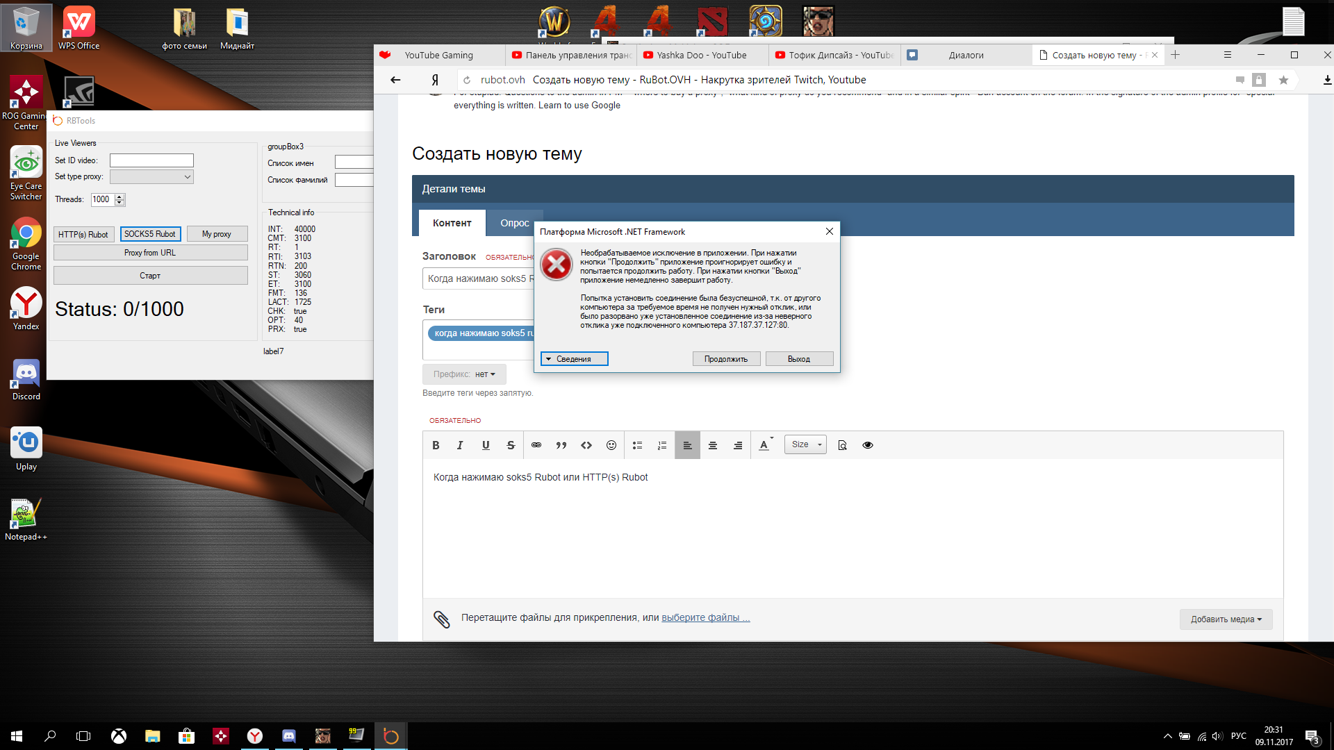 Гость YashkaDoo Опубликовано 9 ноября, 2017 Опубликовано 9 ноября, 2017 Когда нажимаю soks5 Rubot или HTTP(s) Rubot Вот что вылазит что делать? и еще нагружает цп на 100