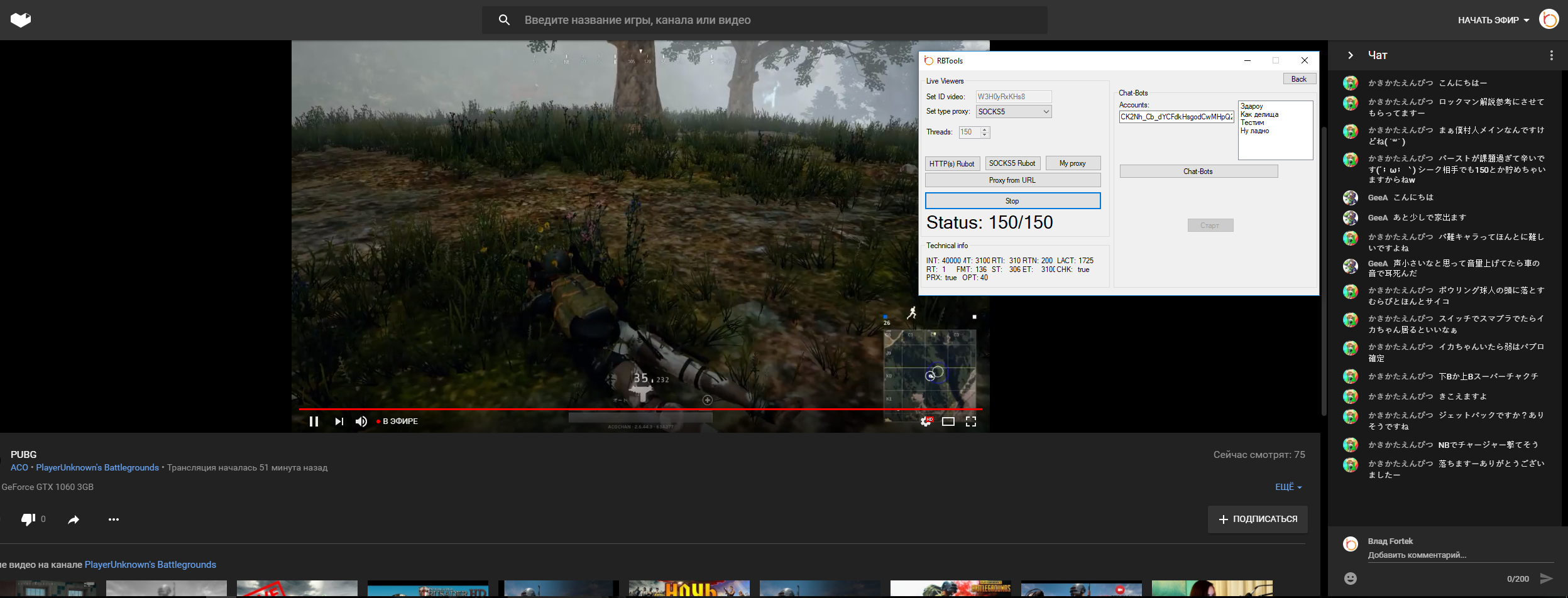 Clrtis33 Опубликовано 24 ноября, 2017 Опубликовано 24 ноября, 2017 3 часа назад, Piro сказал: А какой программой можно постить в свой канал текста ? И вопрос такой ещё , почему при 1000 потоков на youtobe программа сама закрывается , а при 2000 потоков в твитче программа не закрывается Постить в свой канал?(сложно) если писать, то пока что только на твиче можно, чат ботами. Про ютуб 1000 потоков не юзайте вообще, 100-200 максимум, а про твич, какие 2000 потоков? Если пользуешься прокси за 300 рублей, ставь не более 500 потоков в окно, да и если покупные прокси ( дорогие) так же, просто насилие твоего компа ( дедика ) если ты ставишь 2000 потоков в одно окно. Цитата