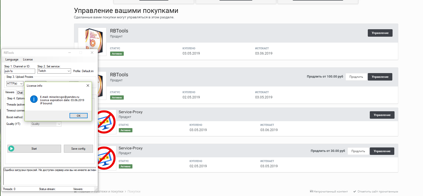 Гость Akita Опубликовано 13 июня, 2019 Опубликовано 13 июня, 2019 4 минуты назад, Jack Shepard сказал: когда оформляете прокси, там указано к какой покупке их следует привязать, в вашем случае вы привязали к истекшей лицензии. С моем стороны вашу проблему исправил сейчас. Если можно для особо одаренны(т.е. для меня) объяснить что и как теперь запускать чтобы прокси работали?