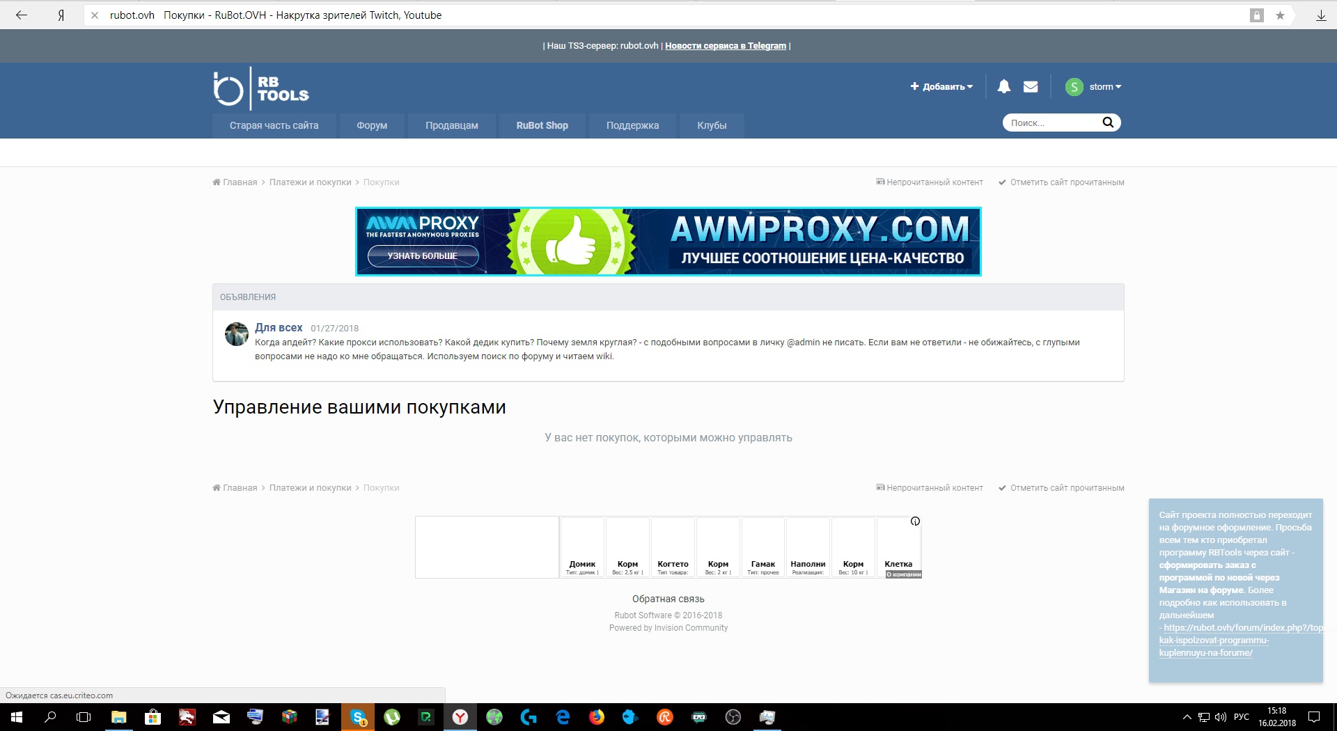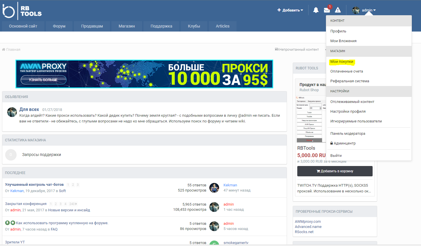 Admin Опубликовано 16 февраля, 2018 Автор Опубликовано 16 февраля, 2018 1 минуту назад, GoodLordOFdarkneSS сказал: Зрасьте, у меня вечная лицензия и прога сейчас не работает, вы говорите на форме нужно пройти покупку по новой но не платить, но я не могу найти на форму где купить рубота, скиньте пожалуйста скрины всей процедуры или ещё лучше запишите видео и закрепите его в топик) меню форума гляньте и увидите Rubot Shop ,а еще на главной сбоку красуется софт Цитата
