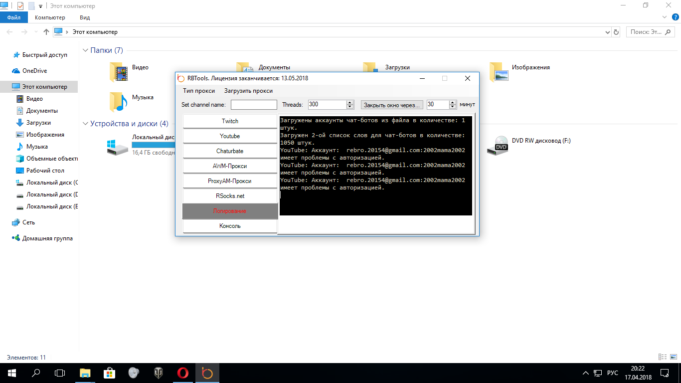 Гость AMIGO_127 Опубликовано 17 апреля, 2018 Опубликовано 17 апреля, 2018 Делаю все по инструкции , вошел на аккаунт , создал канал , зашел на рандомный стрим и написал комментарий , пишу в программу но опять же пишет "Аккаунт имеет проблемы с авторизацией" Цитата