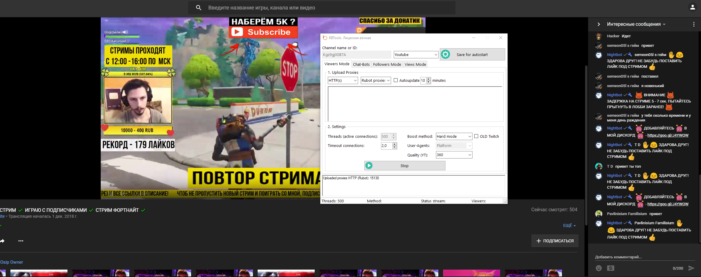Admin Опубликовано 3 декабря, 2018 Автор Опубликовано 3 декабря, 2018 ну на рубот проксях можно накрутить, на хттп в 500 потоков делается свободно 50 зрителей