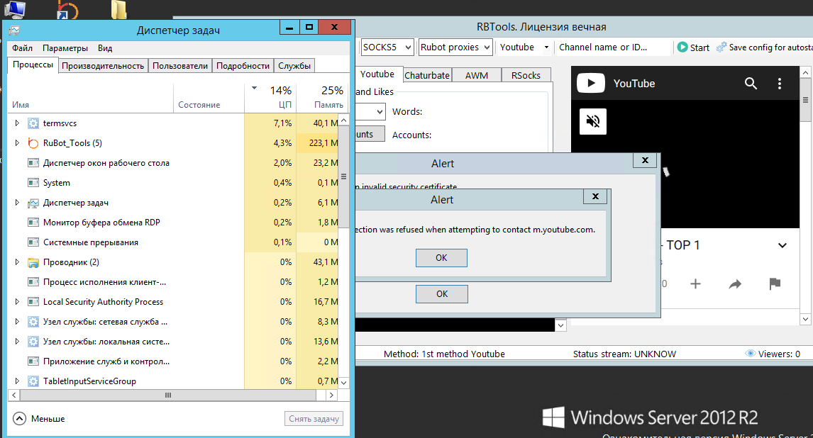 Admin Опубликовано 10 июня, 2018 Автор Опубликовано 10 июня, 2018 Ну что дозор, пошла первая альфа. betaRubot.zip По особенностям: - Режимы накрутки работают, но второстепенные методы такие как slow-mode и 2-метод Ютуб требуют работы напильником. - Таймауты пока что не работают. - Лайки работают. - Накрутка просмотров осуществляется временно в 1 поток с таймаутом в 10 секунд. Особенность GeckoFX в том что он не может работать во второстепенном потоке, а только из главного и из формы его нельзя объявить несколько раз. В траффик-боте это решалось созданием нескольких процессов, к примеру, ставили 20 потоков, запускались 20 процессов и это очень дико грузило систему. Здесь будет все в пределах 1 процесса и с минимальной нагрузкой. Собственно проверил на паблик сокс5 без предварительного чека, на 20 проксей пришлось 7 просмотров. - Автозапуск пока что еще не работает. Очень сырая версия, но для ознакомления будет самое то. 1 1