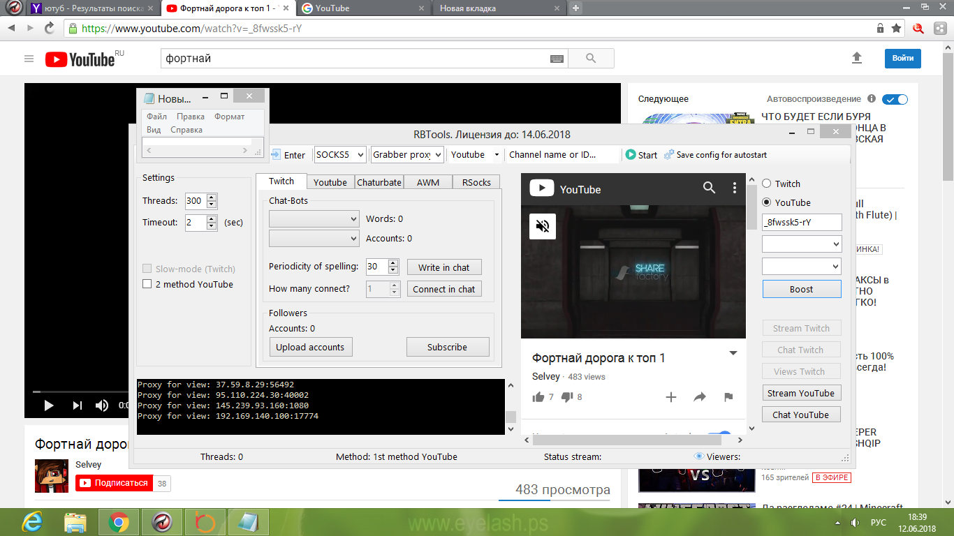 Admin Опубликовано 12 июня, 2018 Автор Опубликовано 12 июня, 2018 11 минут назад, krik сказал: как на картинке выбери и все как шоколадка пойдет ну йобана, накрутка без проксей же. Вы выбираете тип прокси для накрутки зрителей, загружаете прокси, которые идут в общий массив и жмете boost кнопку уже на вьювинге. Он прокси прогоняет но на деле, на вьюв-режиме она не засчитывается