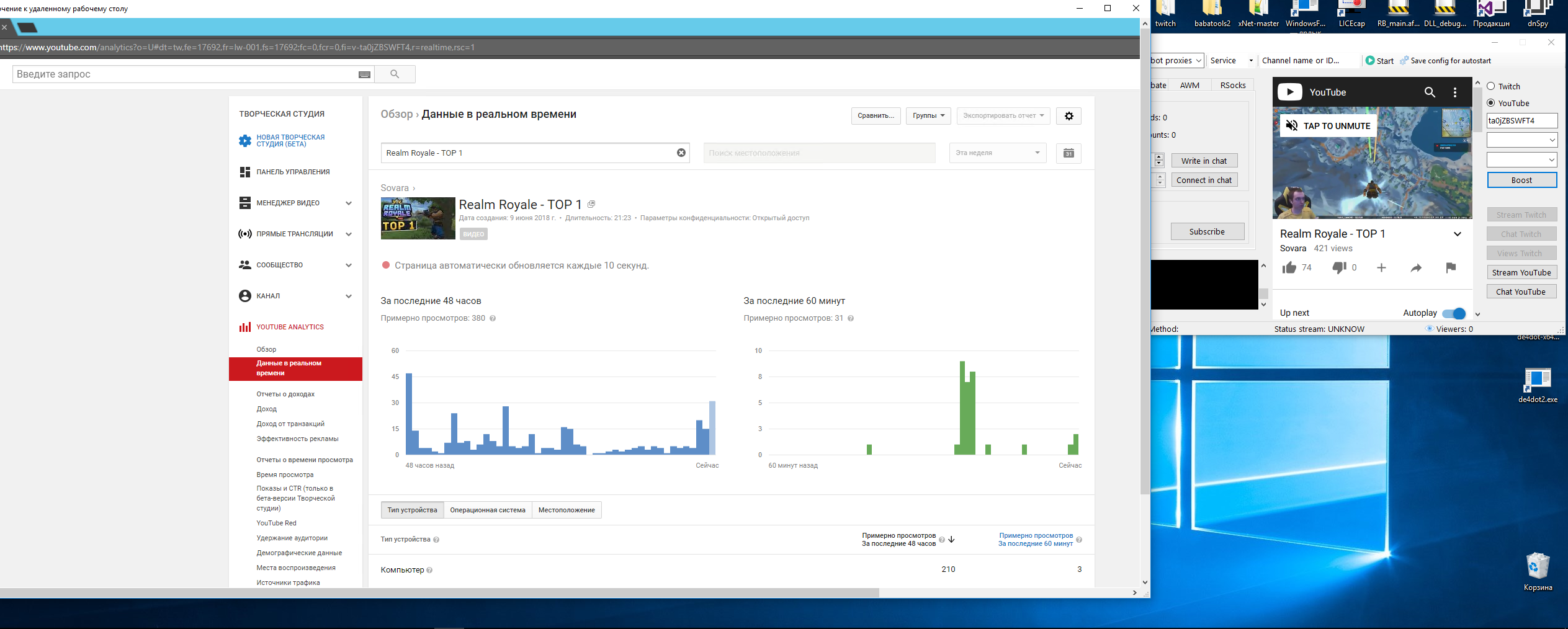 Admin Опубликовано 12 июня, 2018 Автор Опубликовано 12 июня, 2018 Затестировал у S25 на дедике по просмотрам, у него без проксей почему то не работает, даже тупо в браузере по F5 не засчитывается в статистику в кабинете. Со своего компьютера проводил тест и пытался крутануть - все ок, стата записывалась. Видимо на ютубе стоит некий алгоритм на определение ОС или чистоты IP, проверю через VPN этого же сервера но с домашней пекарни. 1