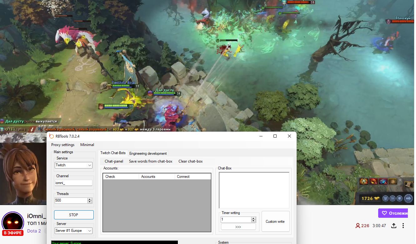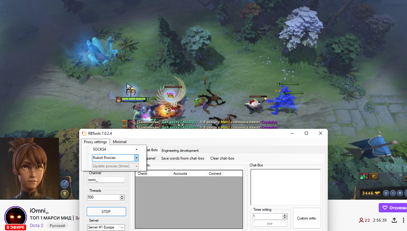 Гость Kiryl Khodak Опубликовано 7 апреля, 2022 Опубликовано 7 апреля, 2022 Тестировал разные способы. В общем все чего я добился, это 25-30 зрителей. Включать нужно 6 программ одновременно. SOCK5 не работает вообще из предоставленных проксей RuBot. Я ставлю sock4 + http по три штуки и так получается накрутить 30 зрителей. Если включить одну прогу, зрителей штук 5-7. Не знаю, стоит ли 20$ в месяц это. Есть сервисы, которые крутят 100 зрителей в месяц за 15$. Подскажите, я что-то делаю не так? Кручу твич.