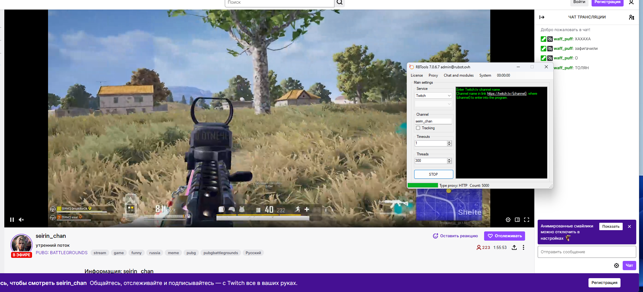 Admin Опубликовано 9 февраля, 2024 Автор Опубликовано 9 февраля, 2024 1 hour ago, ogkush said: it's a general problem. Twitch released an update recently. Admin, we're waiting for you to fix ❤️ Spoiler Еще раз проведены тесты. С последним фиксом который я сделал - все работает. Прокси использовались Advanced.name.