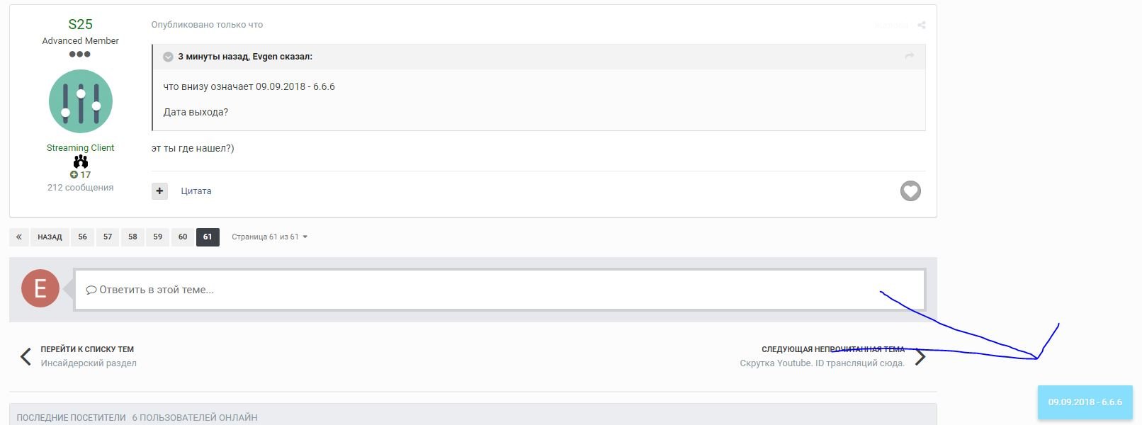 S25 Опубликовано 5 сентября, 2018 Опубликовано 5 сентября, 2018 3 минуты назад, Evgen сказал: что внизу означает 09.09.2018 - 6.6.6 Дата выхода? эт ты где нашел?)