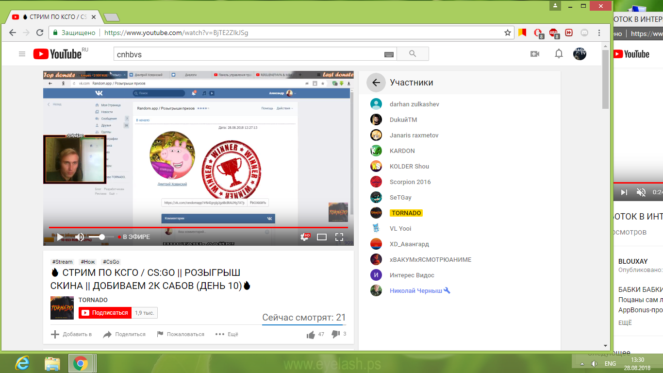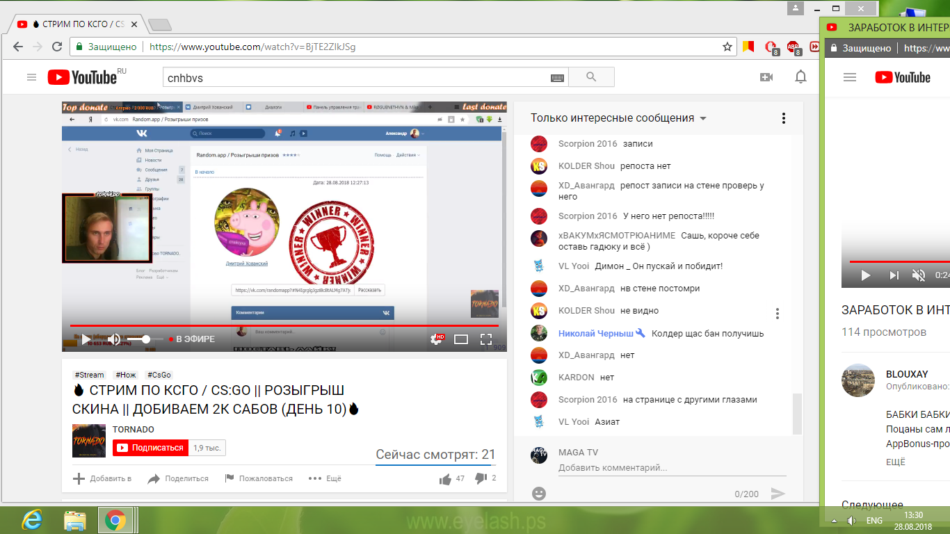 Гость Kixc Опубликовано 4 сентября, 2018 Опубликовано 4 сентября, 2018 12 минут назад, mishuninsergei сказал: 2 день транслирую на ютубе и держу по несколько часов от 500 и более что ночью что днём видимо у Вас там что то ? Осталось только понять как продвигается видео крутил пареньку с 20 зрителями кинул ему 700 ботов он сразу в топ вышел на него подписалось очень много людей и чат был эпически активный , а он транслировал без камеры даже кинул себе зашло человек 5-10 потом ещё раз кинул ещё 10–15 ? буду пробовать пробовать и ещё раз пробовать а онлайн стабильно держится Можно узнать сколько окон и сколько потоков на каком вид прокси.Пожалуйста