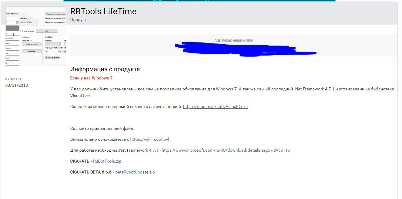 Гость Опубликовано 9 сентября, 2018 Опубликовано 9 сентября, 2018 1 минуту назад, fortek сказал: в личном кабинете в мои покупки, управление Rubot Tools (Вечная лицензия), на странице с ключом и скачиванием стейбл есть ссылка на скачивание бета RBTools моя лицензия называется так.И там нет Бетты