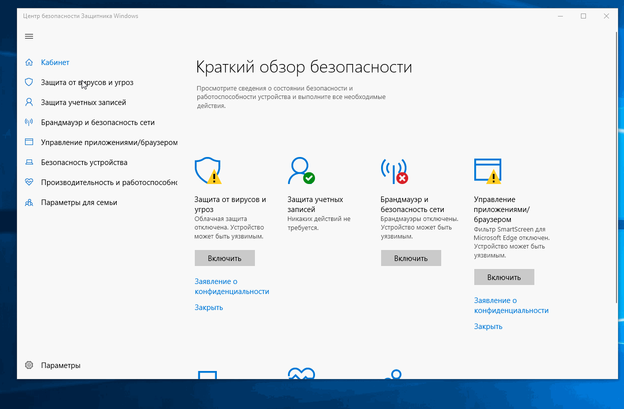 Admin Опубликовано 18 декабря, 2018 Опубликовано 18 декабря, 2018 51 минуту назад, Даниил Чернов сказал: Как отключить защитника виндоус?