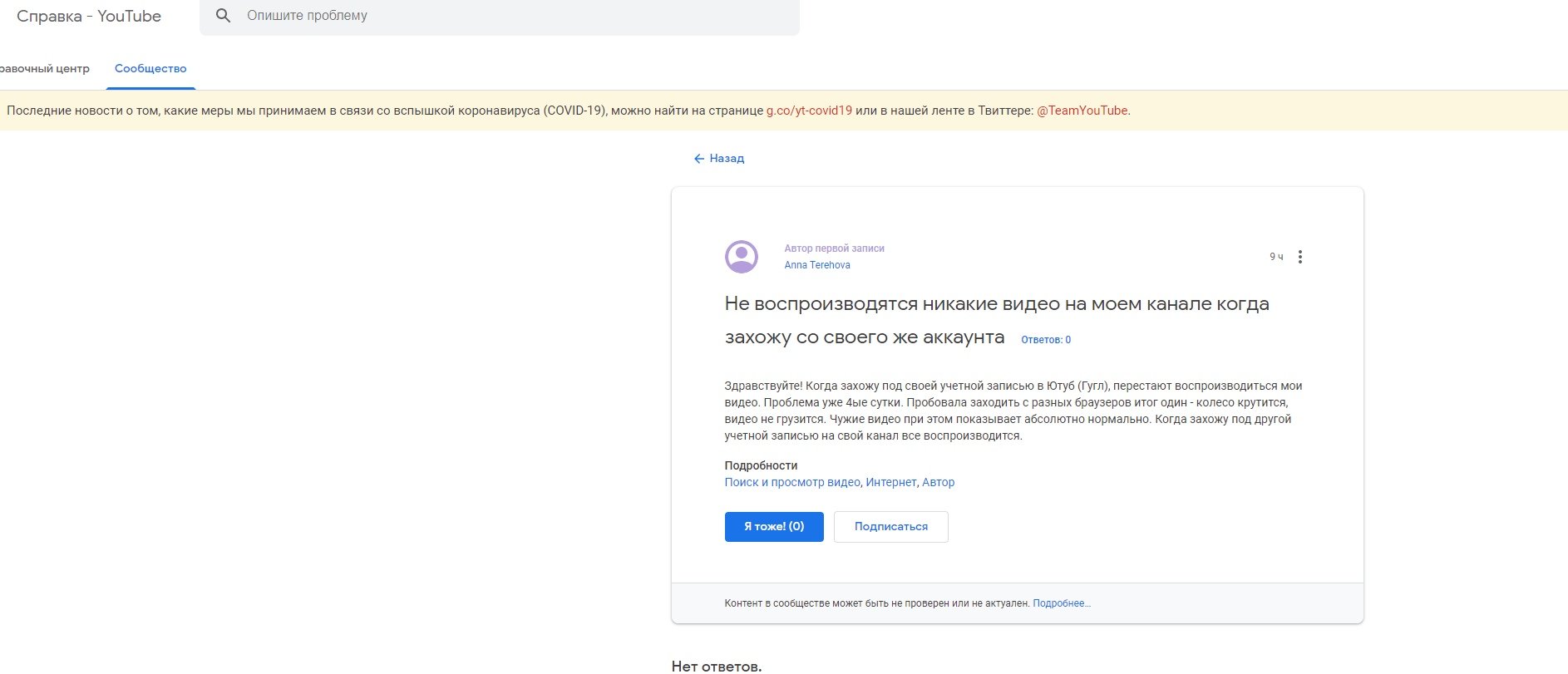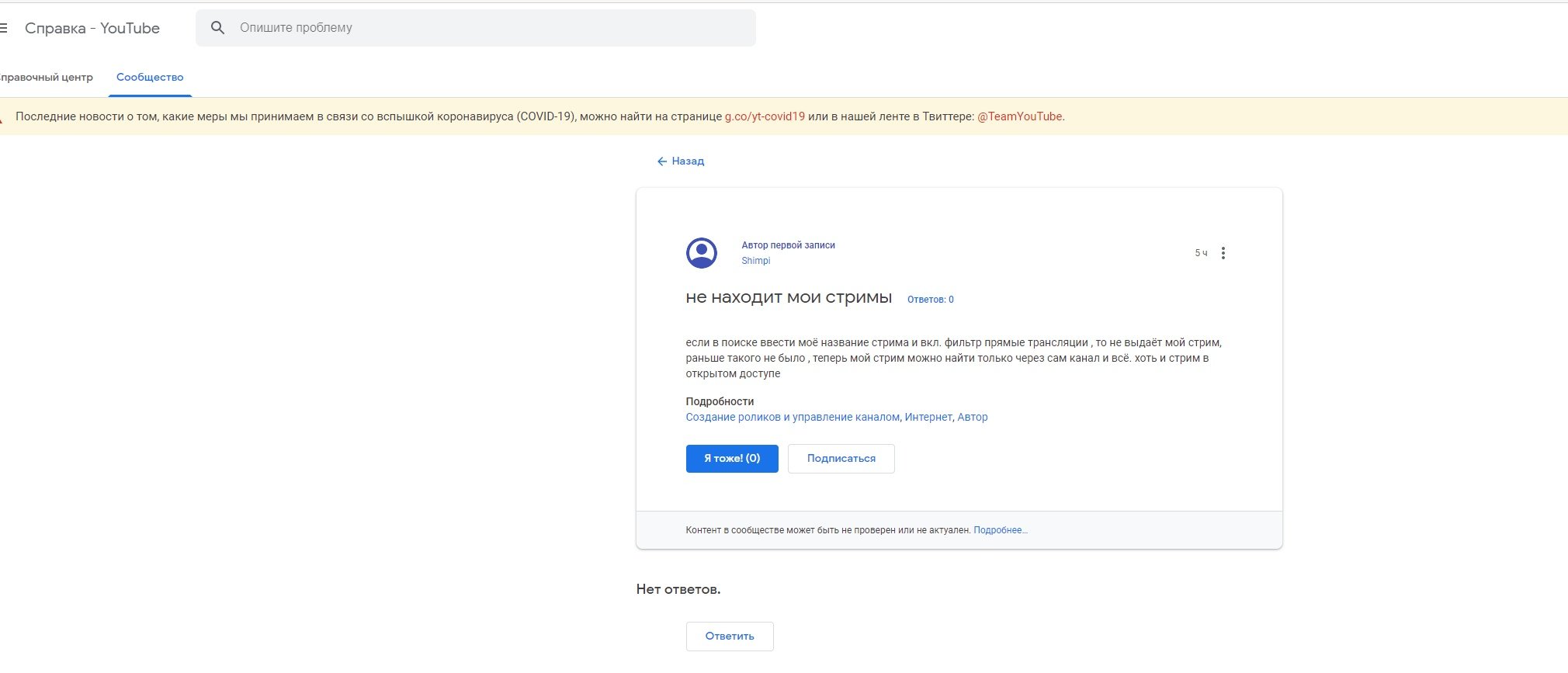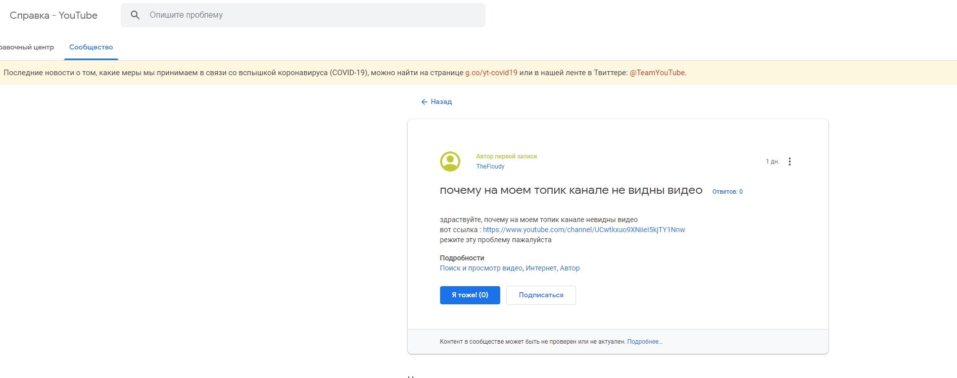 Admin Опубликовано 19 марта, 2020 Автор Опубликовано 19 марта, 2020 Для тех у кого проблемы с отображением видео на канале и в поиске не отображает трансляцию. На гуглофорумах проблема такая же наблюдается. Спойлер 1