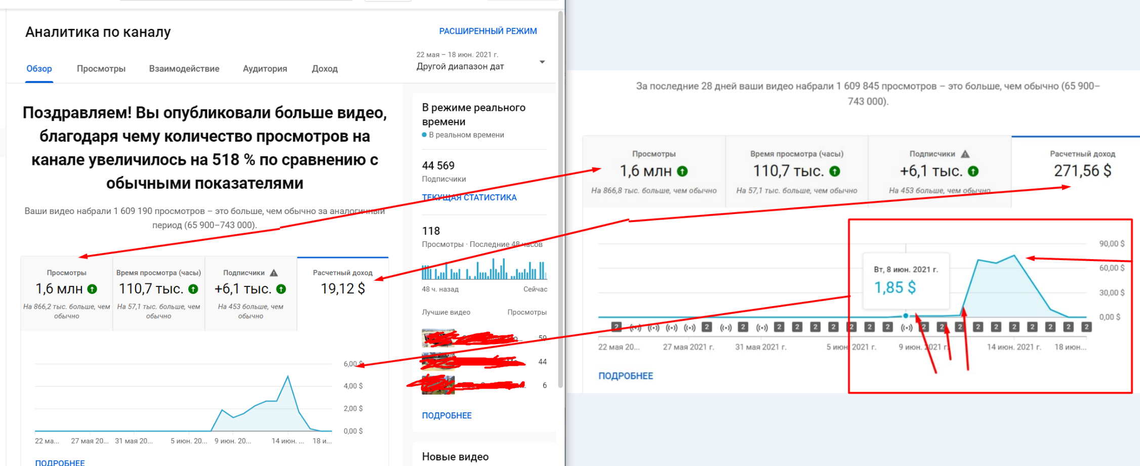 Geralt Of Rivia Опубликовано 5 сентября, 2021 Опубликовано 5 сентября, 2021 4 минуты назад, MaxSteel сказал: Аналогичная ситуация по списанию дохода. Тупо списали в ноль с аналитики. После смены алгоритмов был изменит рубот и источник пошел с разных источников. если ставишь 1000 потоков или 500 то приходит соответственно просмотры на трансляцию 1000 и 500. Но через пару часов эти просмотры списываются с аналитики ( это 100% рубот приходил). После того как заканчивается полоса загрузки прекращаются просмотры и просто висят зрители на трансляции. Вот это может быть поводом для списания всего дохода без разбора потому как рубот "наследил". Может стоит изменить источники трафика на рекомендации??? Вы же смогли сделать часть просмотров из рекомендованных, так давайте попробуем что бы все 100% с рек шли. Прикладываю скрины спустя 2 часа после старта списывает просмотры, если подождать то еще спишет... Пишите кто что думает, больше инфы от пользователей - лучше результат на выходе ПО @Fortec Бля, это то ясно, что такое происходит, я и не отрицаю. Покажите инфу о списании дохода. Вообще нет списания у меня, то как оно может быть у вас?