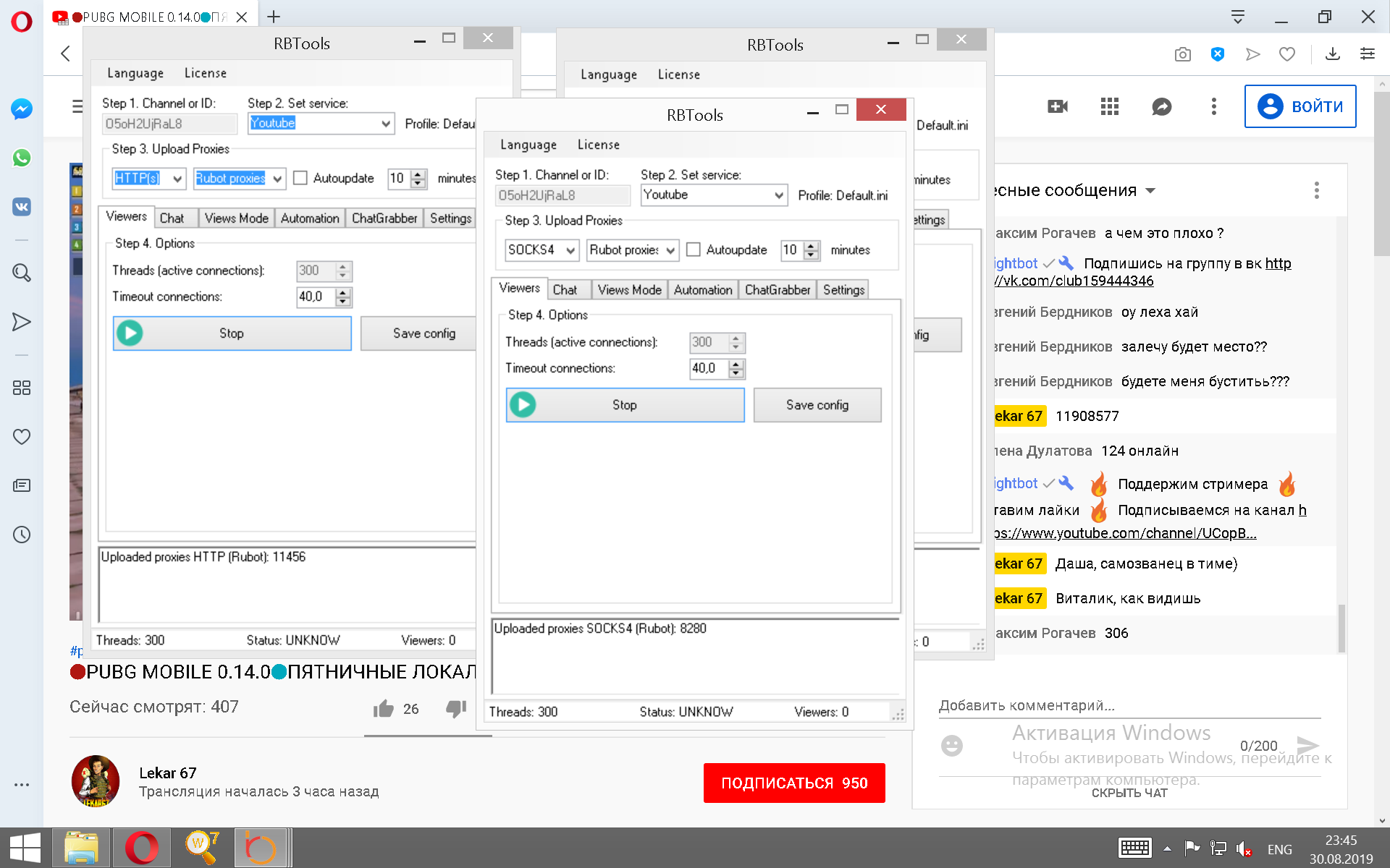 Admin Опубликовано 30 августа, 2019 Автор Опубликовано 30 августа, 2019 Можно и больше 400 зрителей. Но я забил все падения 3 окнами по 300 потоков. 1 окно дошло до 230 и упало к 7 минуте до 205. Потом включил второе окно с сокс5 прокси, но оно почему падение сдержало до 120 и ни туда и не сюда, 3 окно включил с сокс 4 и дело пошло веселее. Эти костыли я завтра постараюсь убрать методом располовинчатого списка прокси, но в целом это имеет мето быть. Опять же это дешевые прокси, хотелось бы видеть результаты на хороших прокси. Потому как на стадии тестирования даже в 1-2 потока, на 10-20 прокси только 1 живой запрос проходил, а соседи по Твичу еще жалуются почему у них 50-80 зрилов это пердел.