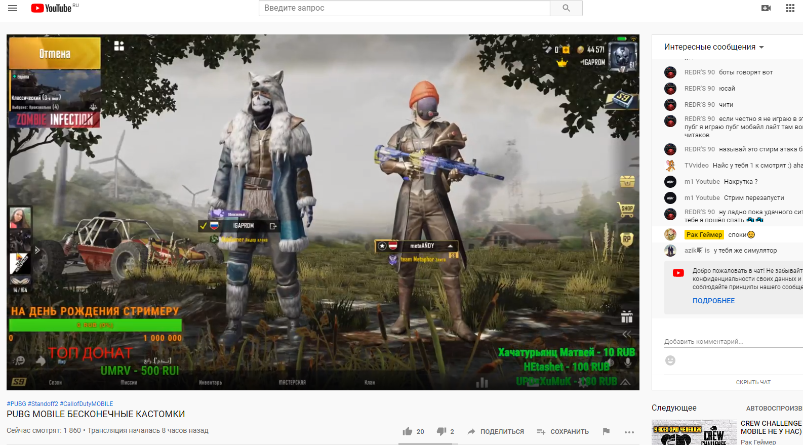 Admin Опубликовано 12 октября, 2019 Автор Опубликовано 12 октября, 2019 3 минуты назад, Kostmurz сказал: уже попробовал ютулзом, вроде держит... как-то странно вроде 1к зрителей, но новые люди не особо заходят, за все время +1 лайк и чат почти молчит... если смотреть на другие такие стримы с 1к+ там пипец какой актив... @Jack Shepard не ответил, этот ништяк можно будет купить навсегда? или в этом методе что-то требует доп. расходов кроме прокси и придется продливать каждый месяц?... он стримит в категории люди и блоги, а не в игровой категории пубг, поэтому такая фигня и не заходят к нему