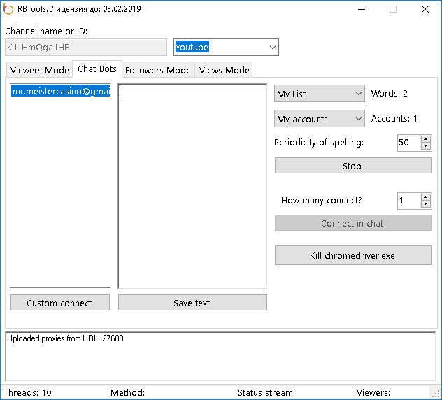 Гость iivanov Опубликовано 25 января, 2019 Опубликовано 25 января, 2019 Здравствуйте, помогите пожалуйста подключить чат бота на youtube при помощи программы rubot. Я создал текстовый документ с мылом и паролем (мыло:пароль), но кнопка подключить аккаунт к чату не работает(она не кликабельна) Цитата