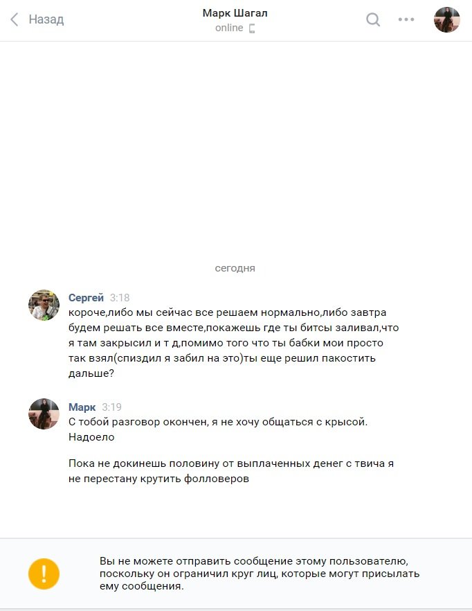 Гость tema1234321 Опубликовано 10 февраля, 2019 Опубликовано 10 февраля, 2019 Итак пост будет достаточно долгим,нужно все пописать.Работал какое-то время с @FPSNoobYang все было нормально в целом,в ноябре прошлого года договорились о том,что там за одну из услуг он мне накрутит праймов и если! выведут средства пилим их пополам,в январе мне выводят деньги(100$ при этом сам он мне залил больше,чем на 100),но деньги эти из того,что накопилось на канале до этого и доната битсами,этот парень с пеной у рта доказывает,что он мне их заливал,хотя я ему скинул все скрины,знаю прекрасно,что кроме праймов он мне ничего не лил на канал(я хз,забыл он или что то еще).Самое интересное вообще,почему этот спор начался?Я отписал ему пару дней назад,говорю мол хочу еще раз затестить,канал стал активным,давай дам денег зальешь мне праймов,он мне пишет окей,и просто пиздит!!!!! деньги( под предлогом того,что я закрысил его долю).Далее начинается самое интересное.Он мне через день начинает крутить сабов и фолловеров на канал люто,продолжается это до сих пор.При этом он угрожает тем,что будет крутить дальше пока я ему не заплачу лол)))общаться нормально и что-то решать он не хочет,кидает в чс,доказывать он тоже не хочет что он что то заливал,пишет что не обязан,хотя я ему видимо обязан,что то доказывать и объяснять что он мне битсы не заливал.Получается чел может вымогать бабки тем,что он будет подсирать каналу всегда?)поставь таксу на месячные донаты сразу или еще что-то что мелочишься,90-е на твиче чел развел.в общем на скринах то как чел общается,он никому ничего не должен,а ему должны и доказать и денег заплатить( а с чего платить если то,что он сделал не принесло денег)там разные акки,ибо я пишу ему сообщение он отвечает и кидает в чс.P.S. Теперь обращаюсь к тебе клоун @FPSNoobYang я забил сначала на эти 1500р которые ты сп...дил у меня,ну теперь ты пожелеешь что ты их взял и начал мне делать пакости,я тебе сказал все нормально и честно и написал еще в первый день сядь и сам все перепроверь что ты мне заливал,но тебе плевать, ок.